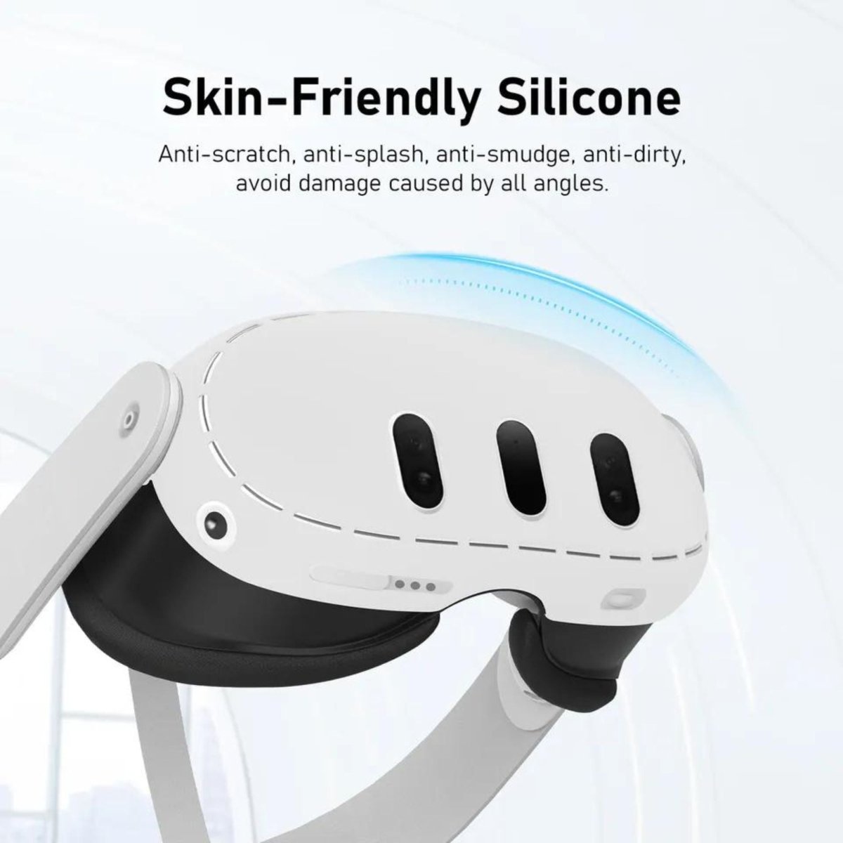 Ett skydd av högkvalitativ silikon för Meta Quest 3 skyddsglasögon för att skydda glasögonen från stötar och fall.