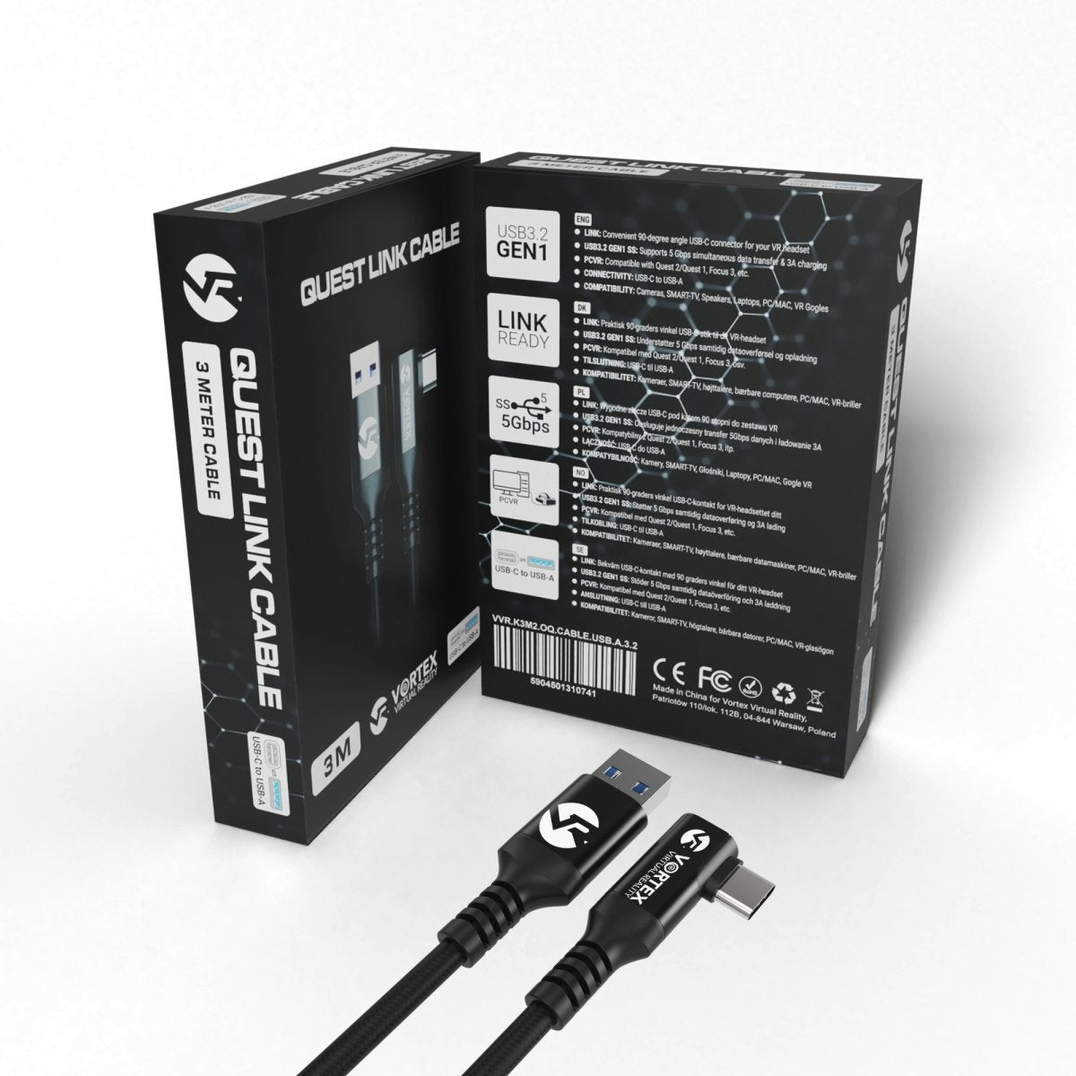 Ny 3 meter lång kabel från VortexVR USB-A till USB-C för Oculus Link - Vortex Virtual Reality