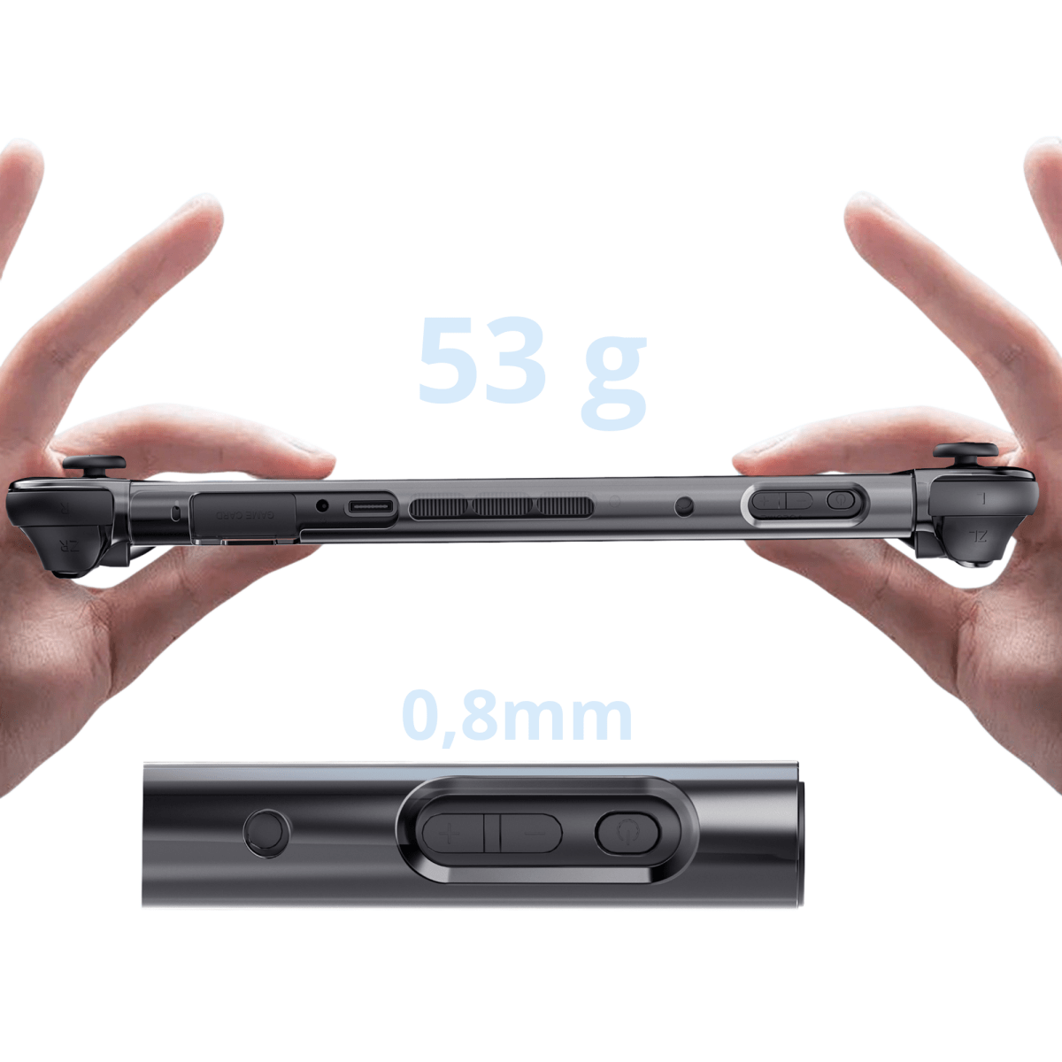 Ultrathin og lett - bare 0,8 mm tykk og 53g i vekt