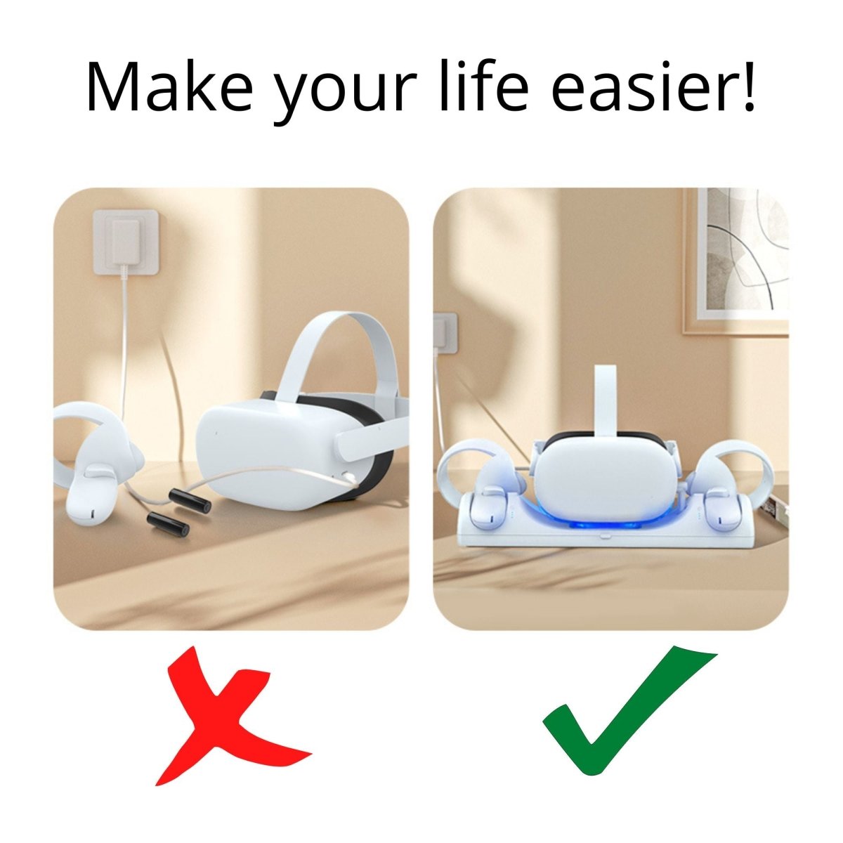 Dokkingstasjonen sikrer at Oculus Quest 2-maskinvaren din alltid er klar til å spille og fulladet