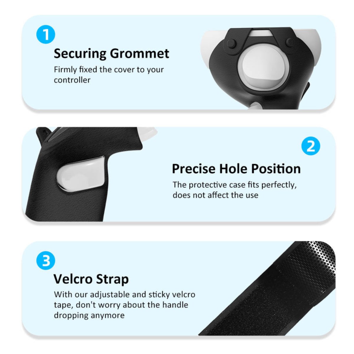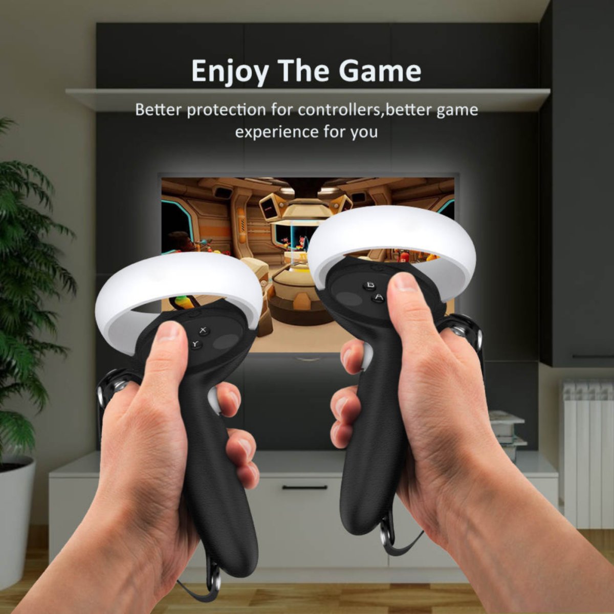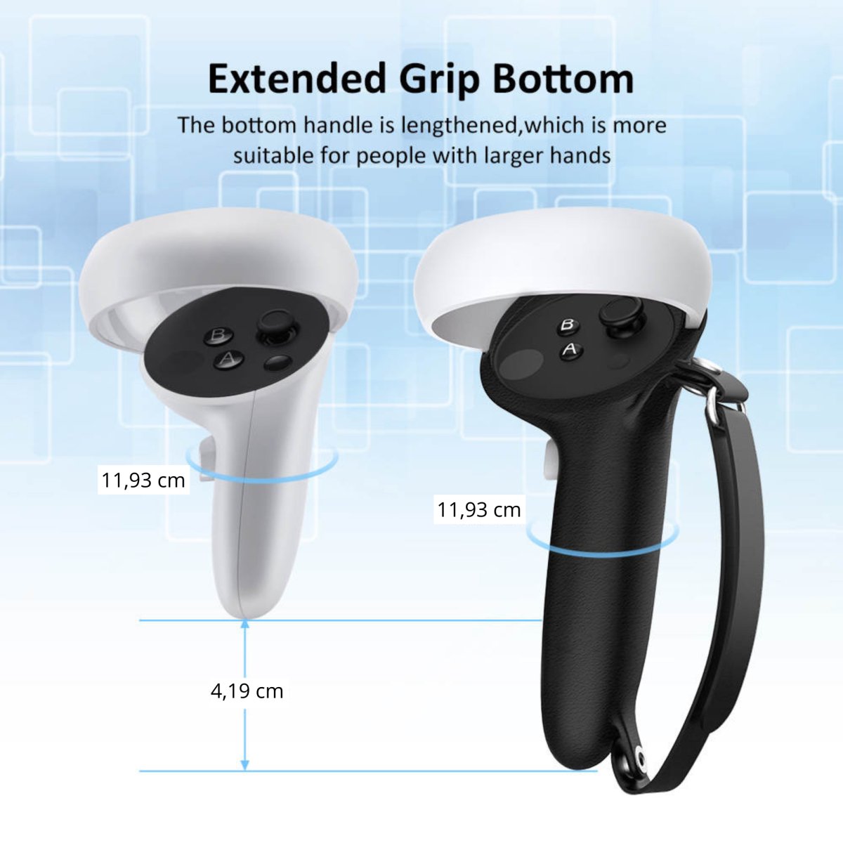 Beskyttelsesdeksler av høy kvalitet til Meta Quest 2-kontrollere, som forlenger grepet ytterligere samtidig som de gir beskyttelse og komfort under bruk.