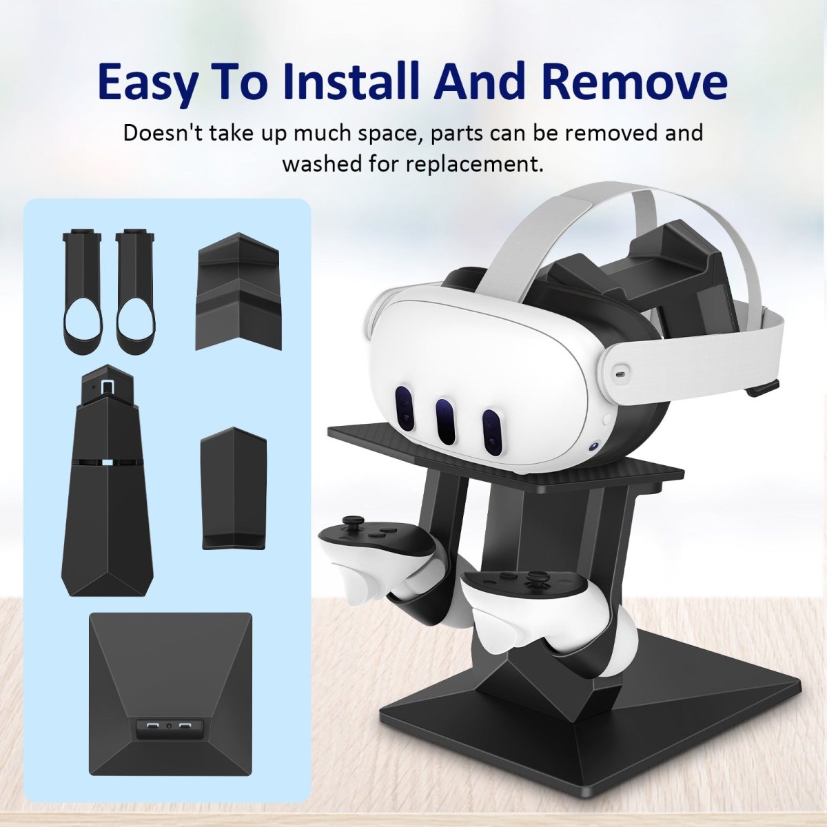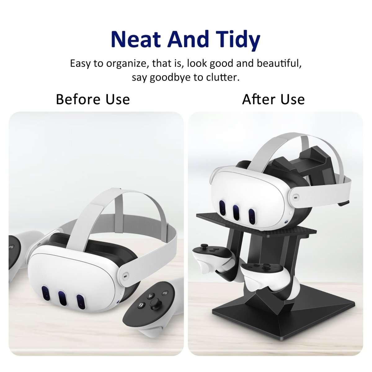 Ta vare på plassen til utstyret ditt. Nytt stativ med holdere for kontrollere og VR-briller