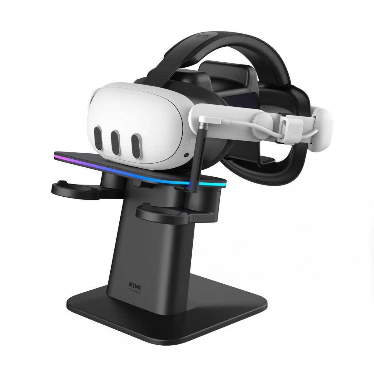Unikt økosystem for ettpunktslading: Bare koble Quest 3 med SPC-batteristang til den vertikale RGB-holderen designet av KIWI, så overfører holderen strøm for å lade hodesettet og batteristangen samtidig.